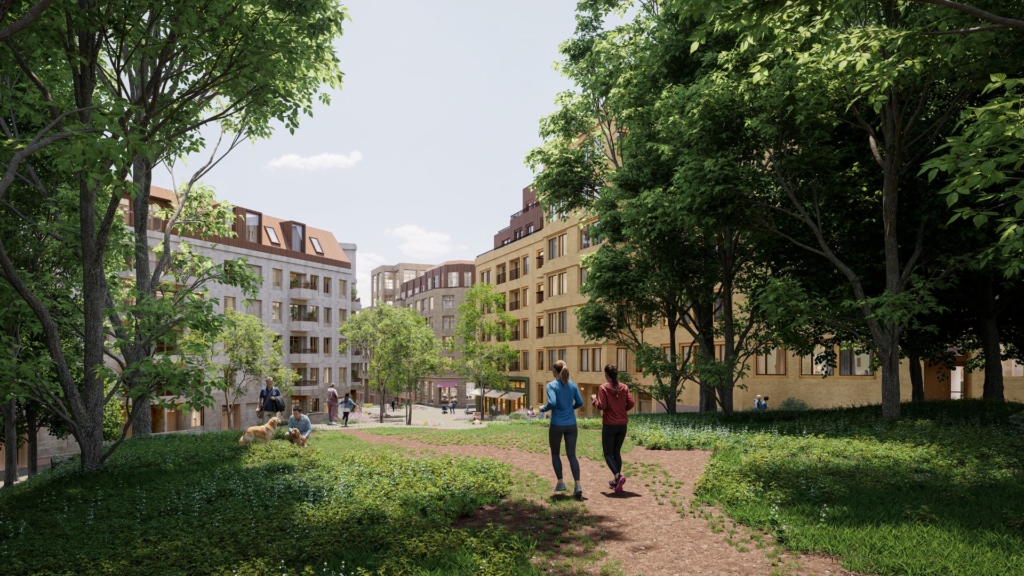Vi planlegger en kvartalsby som puster nytt liv i tradisjonen, hvor bygårder i en variert og helhetlig utforming omfavner torg, grøntområder og sosiale møteplasser. Kvartalene legger til rette for store skjermede gårdsrom med grønne trær og fellesarealer.